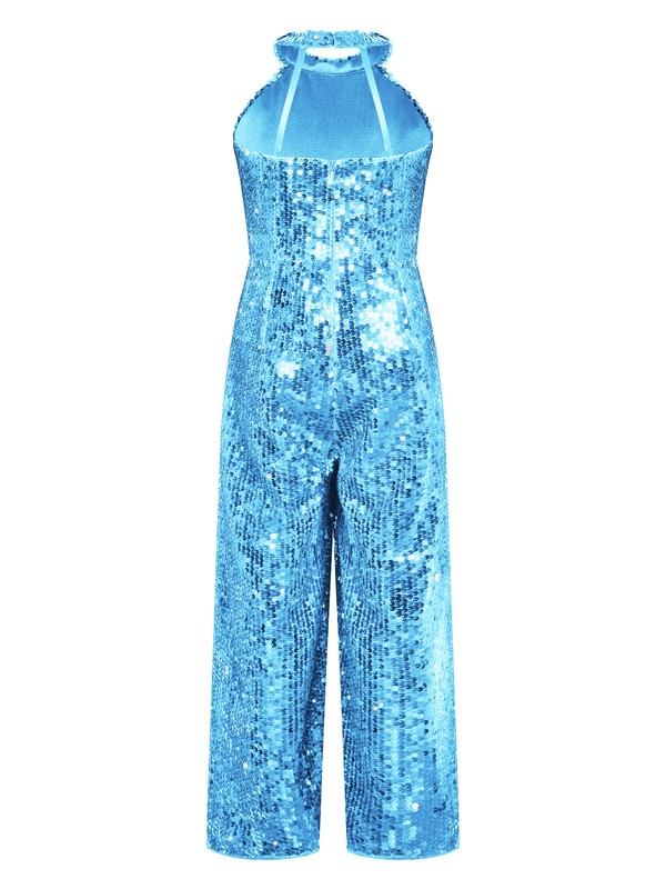 Designed with halter neck, sleeveless, strapy back, high waist, wide leg long pants, back zipper closure, one-piece party rompers.