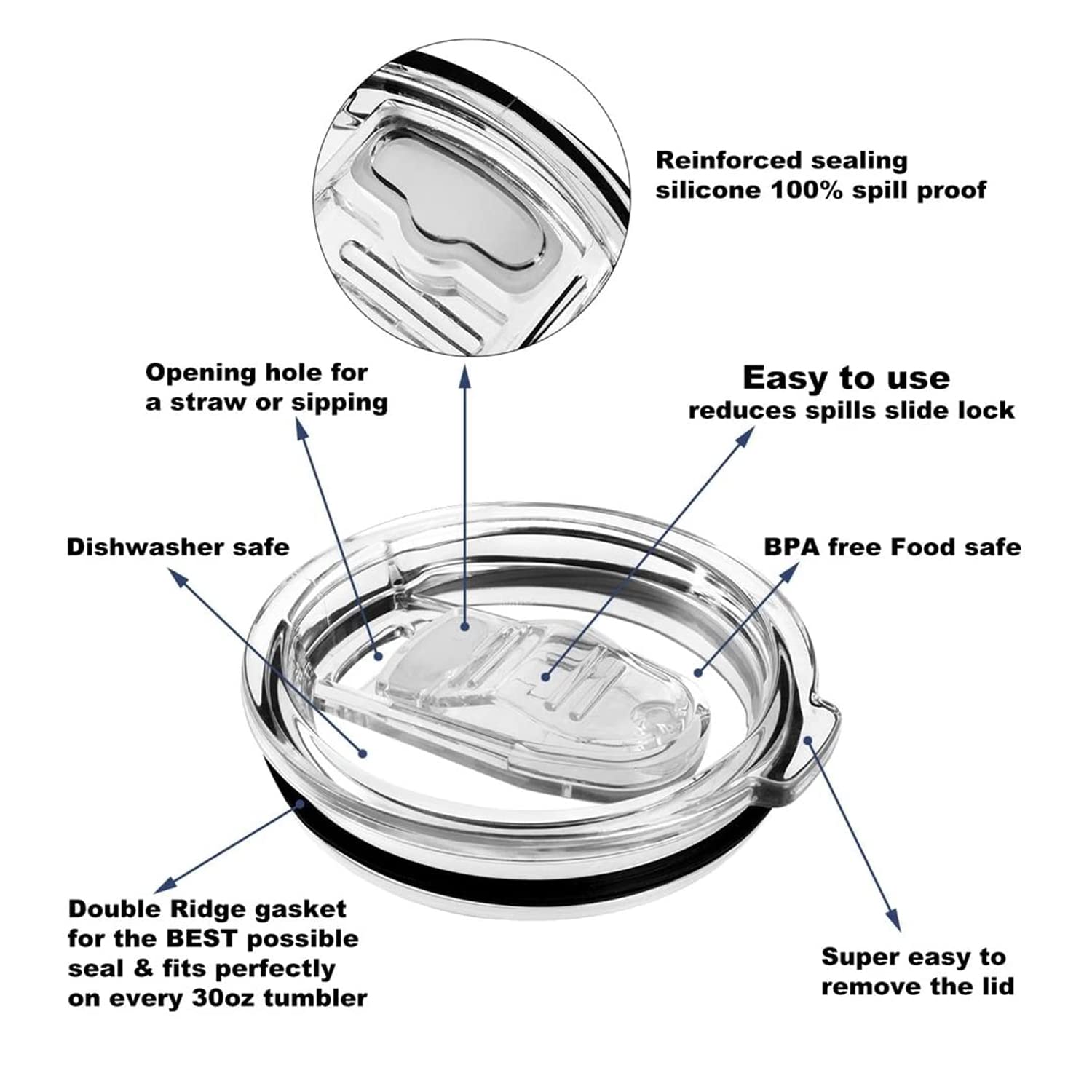 2 Pack Spill Proof and Splash Resistant Tumbler Lids with Two Sealed Rubber