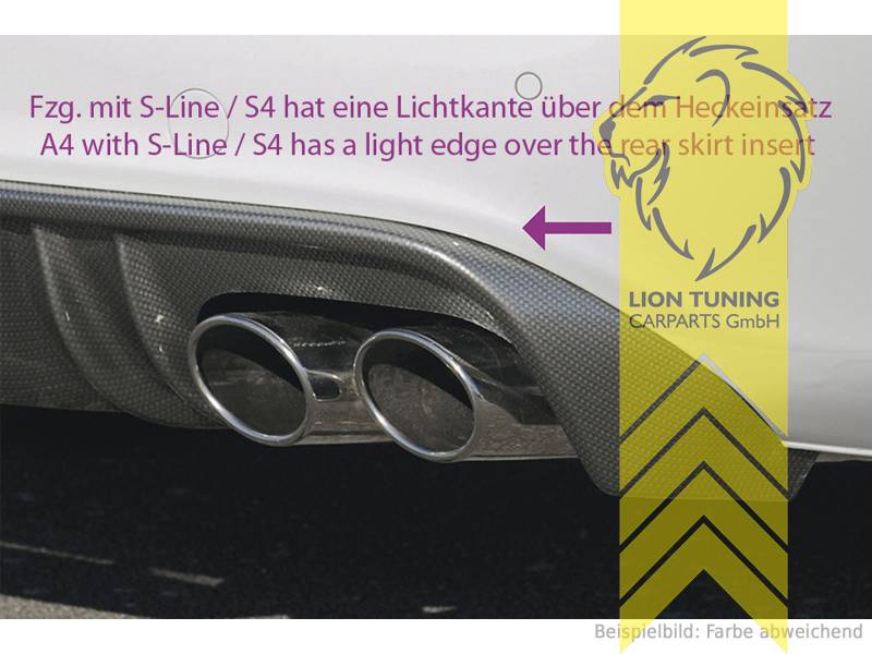 Rieger Heckansatz Heckspoiler Diffusor für Audi A4 B8 Limousine Avant S Line und S4 4 Rohr