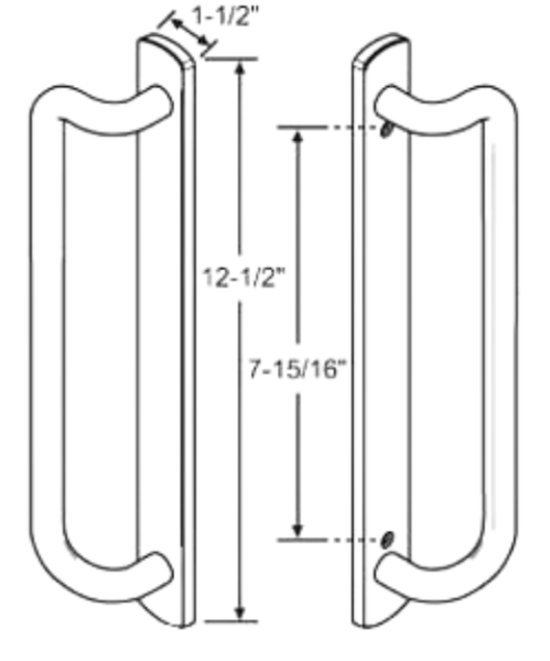 PRECISE MEASUREMENTS: Tailored to perfection, this handle set measures 12-1/2" in length and 1-1/2" in width. With a precise upper to lower screw spacing at 7-15/18", it guarantees a secure and accurate fit for your patio doors.