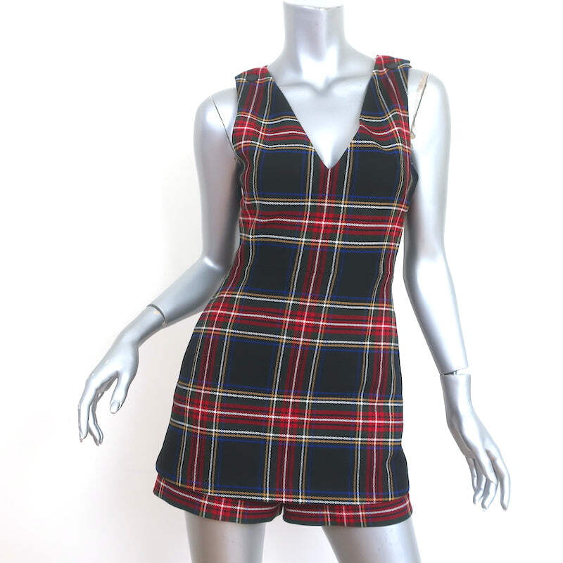 Maje Iris Tartan Plaid Sleeveless Romper Red/Multi Size 36