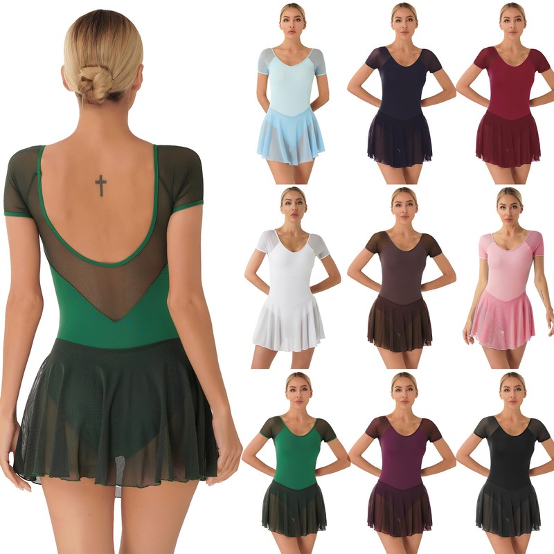 Womens Leotard Patchwork Dress Performance Dancewear Ladies Gymnastics Backless