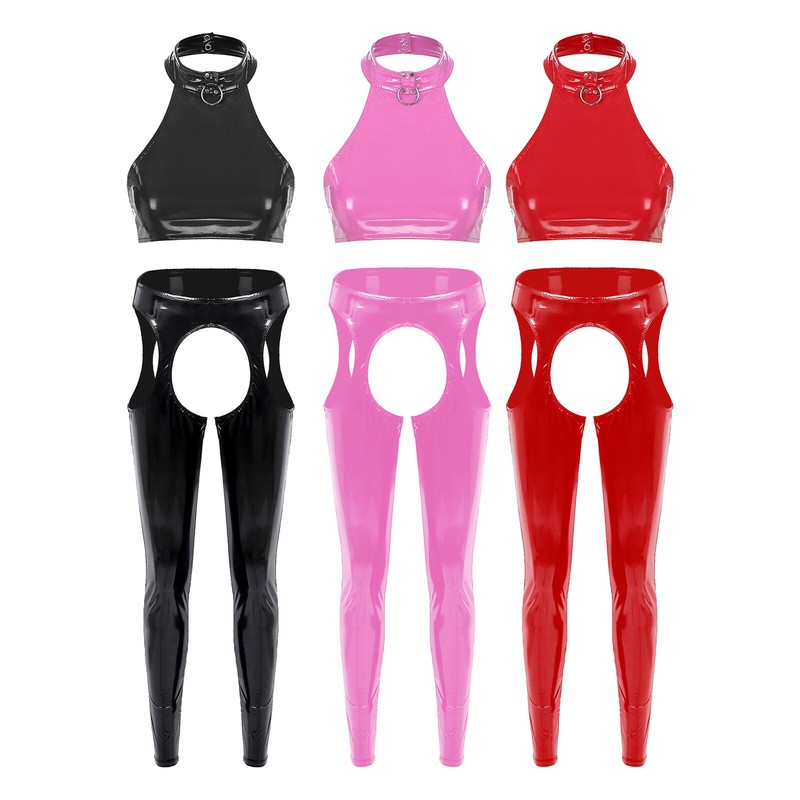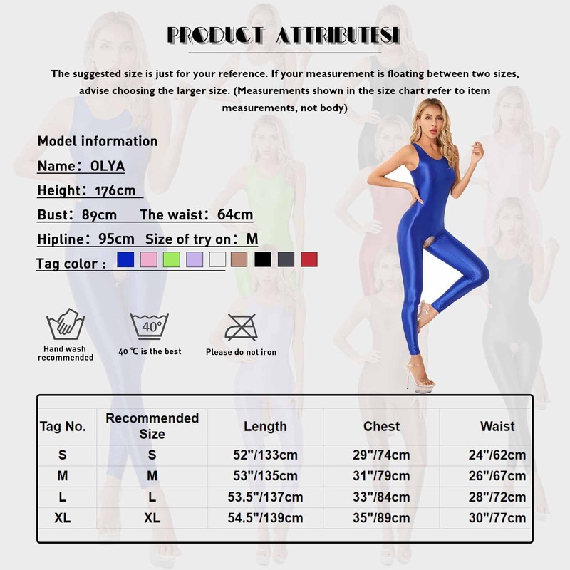 Sleeveless jumpsuits for women, glossy surface, solid color, open crotch design makes you more attractive to your lover.