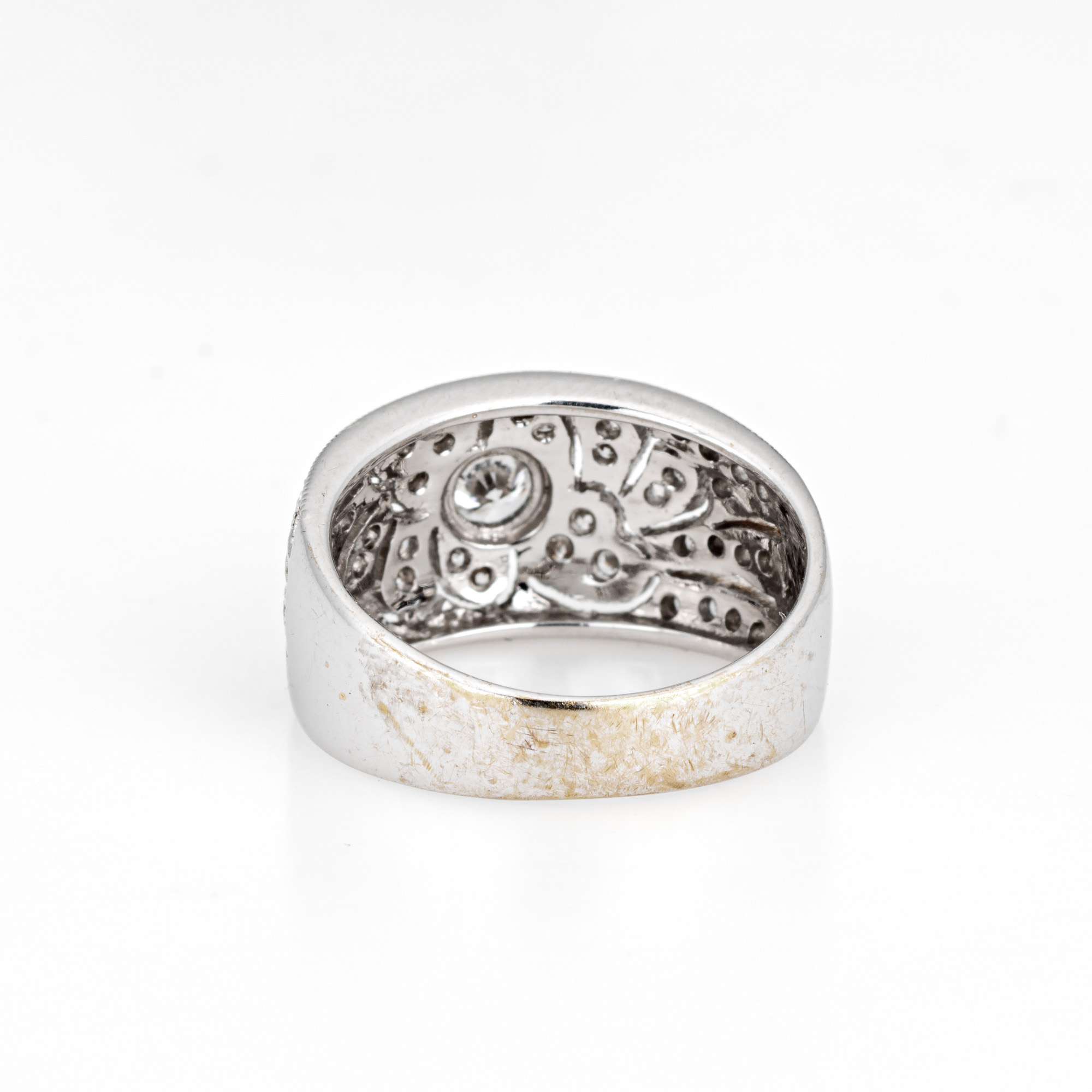 Diamond Half Band Sz 5.5 Wide Cigar Ring 18k White Gold Estate Fine Jewelry