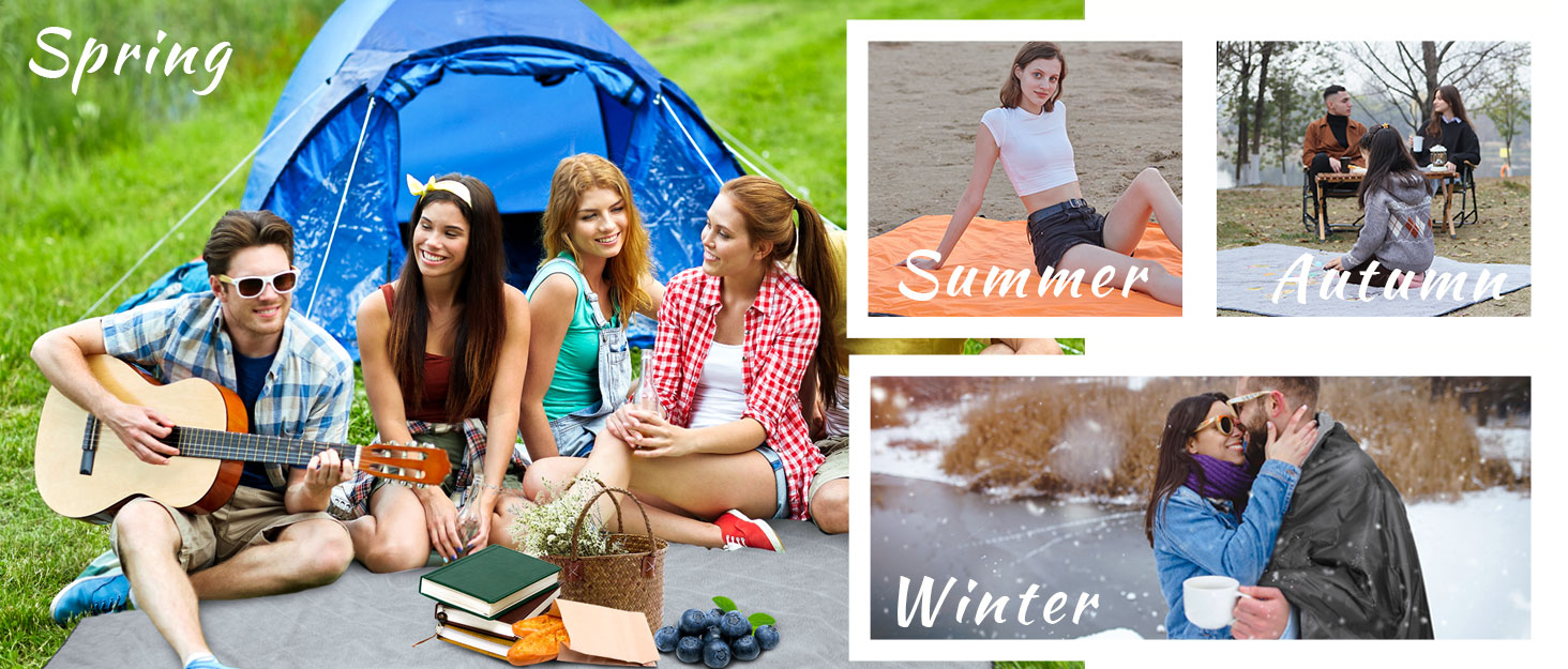 1. It can not only work as an indoor warm blanket, outdoor picnic blanket, camping blanket, football stadium blanket, pet fleece blanket and sand blanket etc, but can also work as a raincoat. No matter where you are, this multifunctional waterproof outdoor blankets can be of some help.