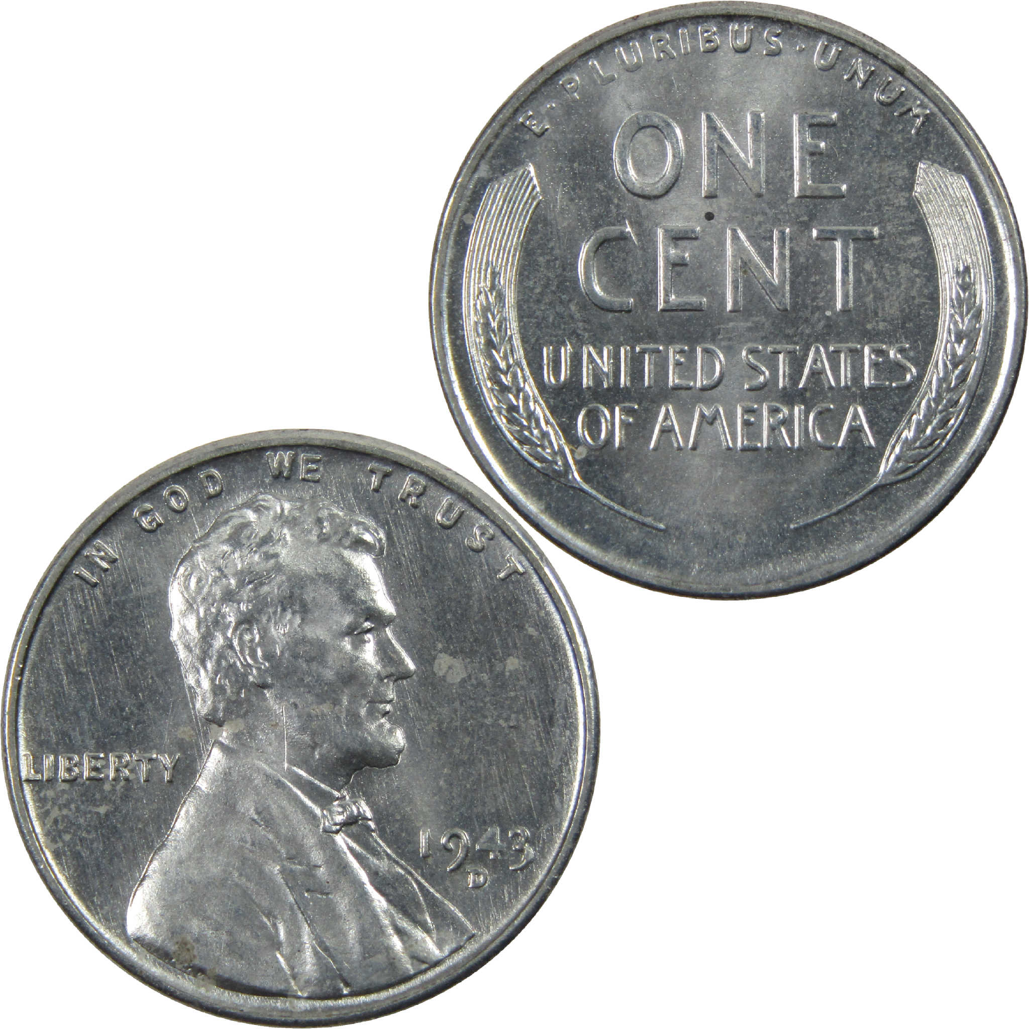 A genuine 1943 D Lincoln Wheat Steel Cent Penny Coin, in AU About Uncirculated Condition