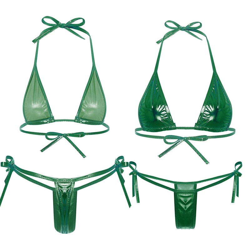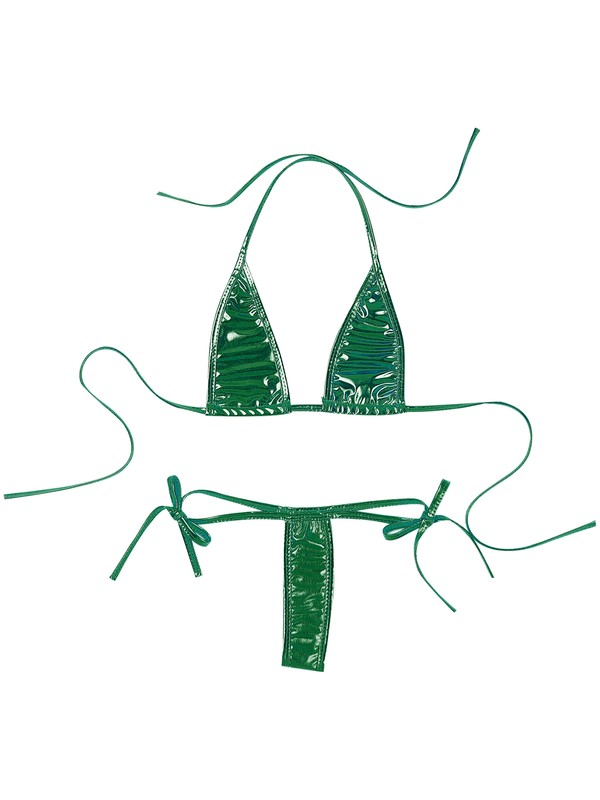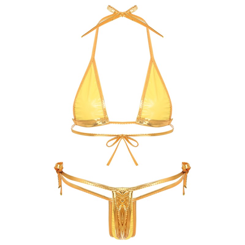 Metallic shiny bikini set just covers up private parts, which brings endless sexy and charming. It will be a nice choice for pool and beach.