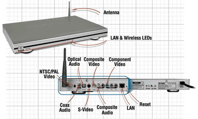 The DSM-320 supports 802.11g wireless standards with transfer speeds up to 54 Mbps, giving you maximum throughput for your digital media. Setting up the DSM-320 wireless media player is simple, and the sleek design makes it a natural addition to your home entertainment center. Audio-video (AV) jacks on the back panel of the DSM-320 can be plugged directly into your TV, letting you access digital media content stored on your PC, browse your music files, watch your videos, and display your photos. In addition, the DSM-320 lets you access online media contents such as Radio@AOL on your TV through an existing broadband Internet connection.