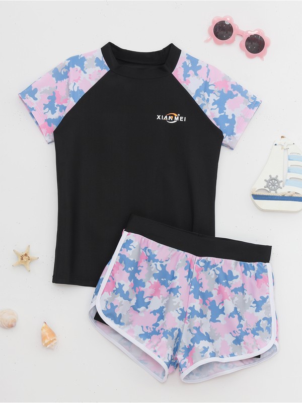Camouflage print makes girls look active and chic. UPF50+ protects girls from sunburn and uv rays.