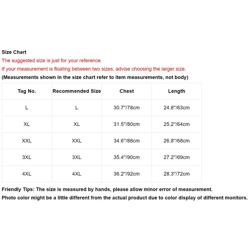 | 4XL | 4XL | 36.2’’/92cm | 28.3’’/72cm |