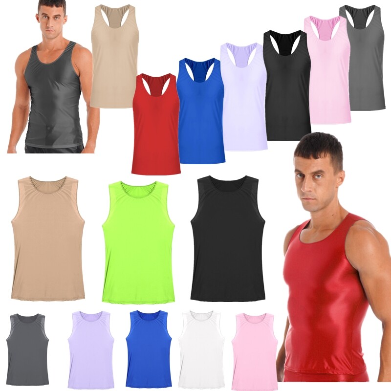 Men Cotton U Neck Sleeveless Racer Back Stretchy Breathable Vest Tank.