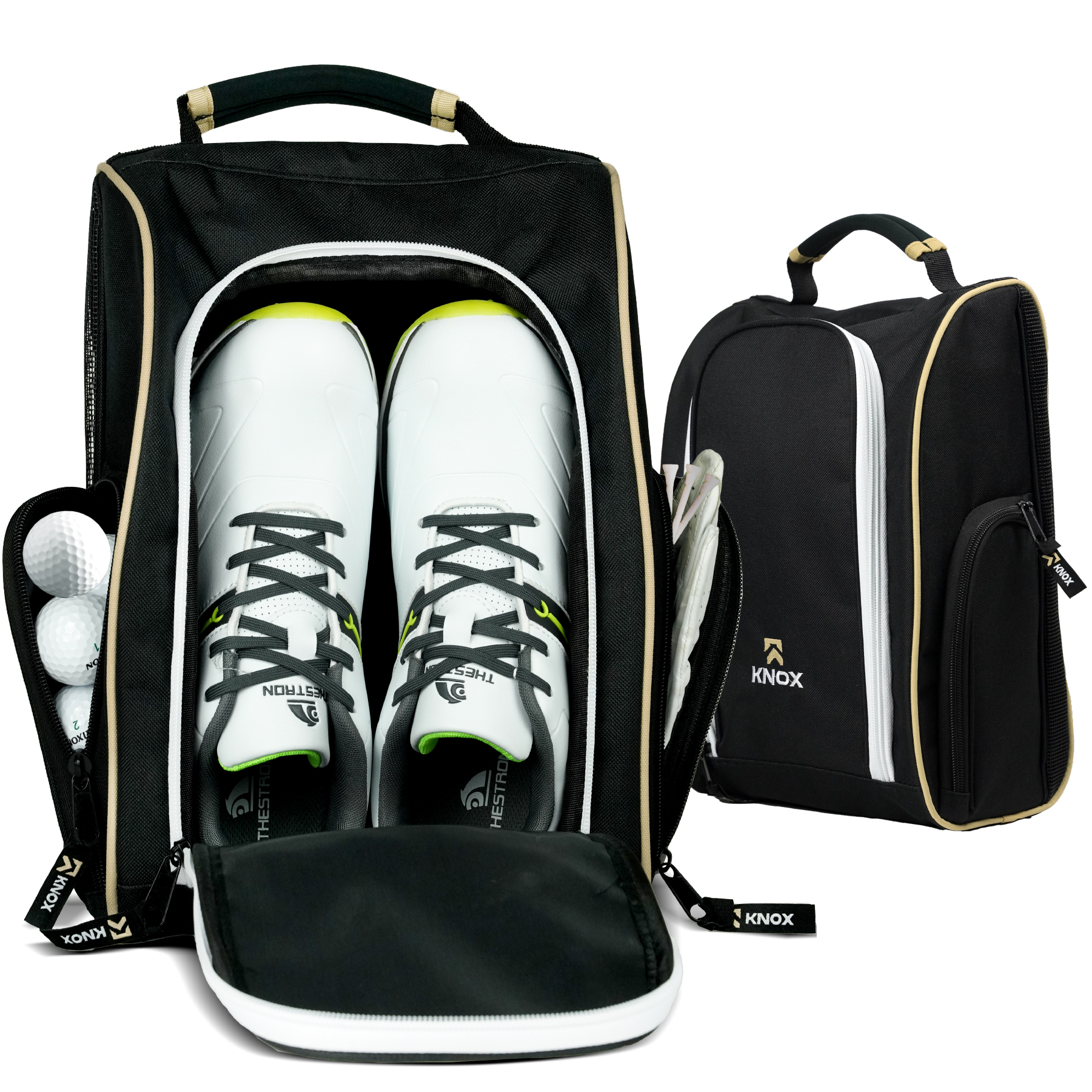 KNOX Golf Shoe Bag with Ventilation & Double Side Pockets for Socks, Tees, Golf Balls, Premium Padded Men Women Sports Travel Shoe Bag for Golf Shoes, Cleat Shoe Storage Organizer, Pickleball Shoe Bag