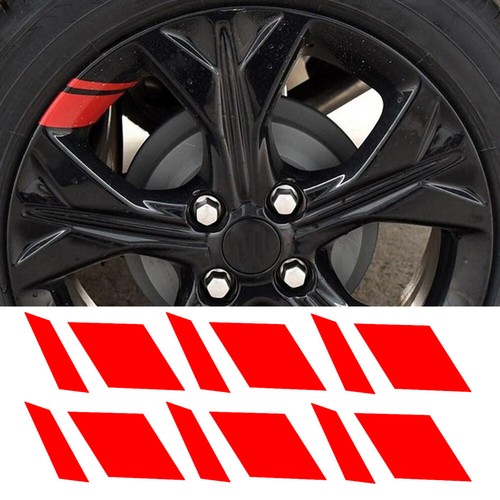 Quantity: 6pcs Material: reflective and waterproof Color: red Suitable for precision cutting decals for 16"-21" rims (almost universal) The space between the spokes required for 3" decals.