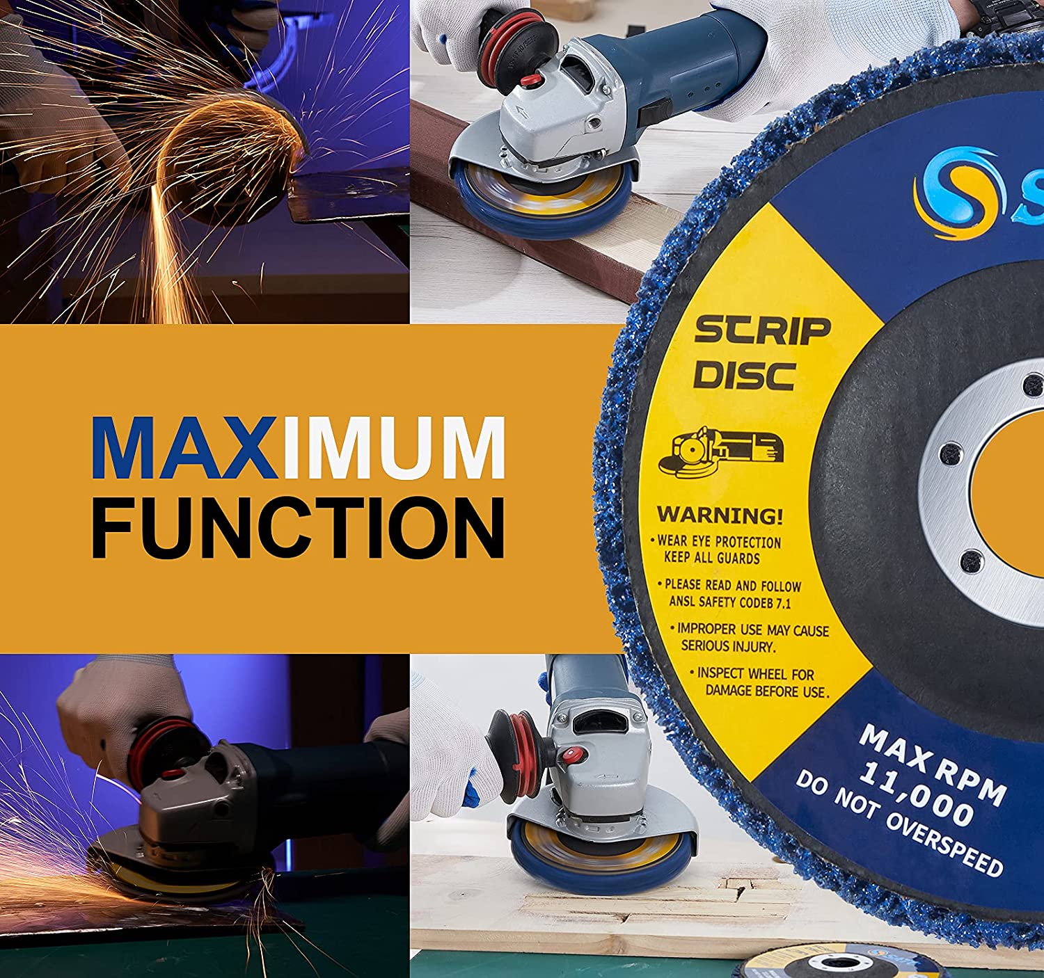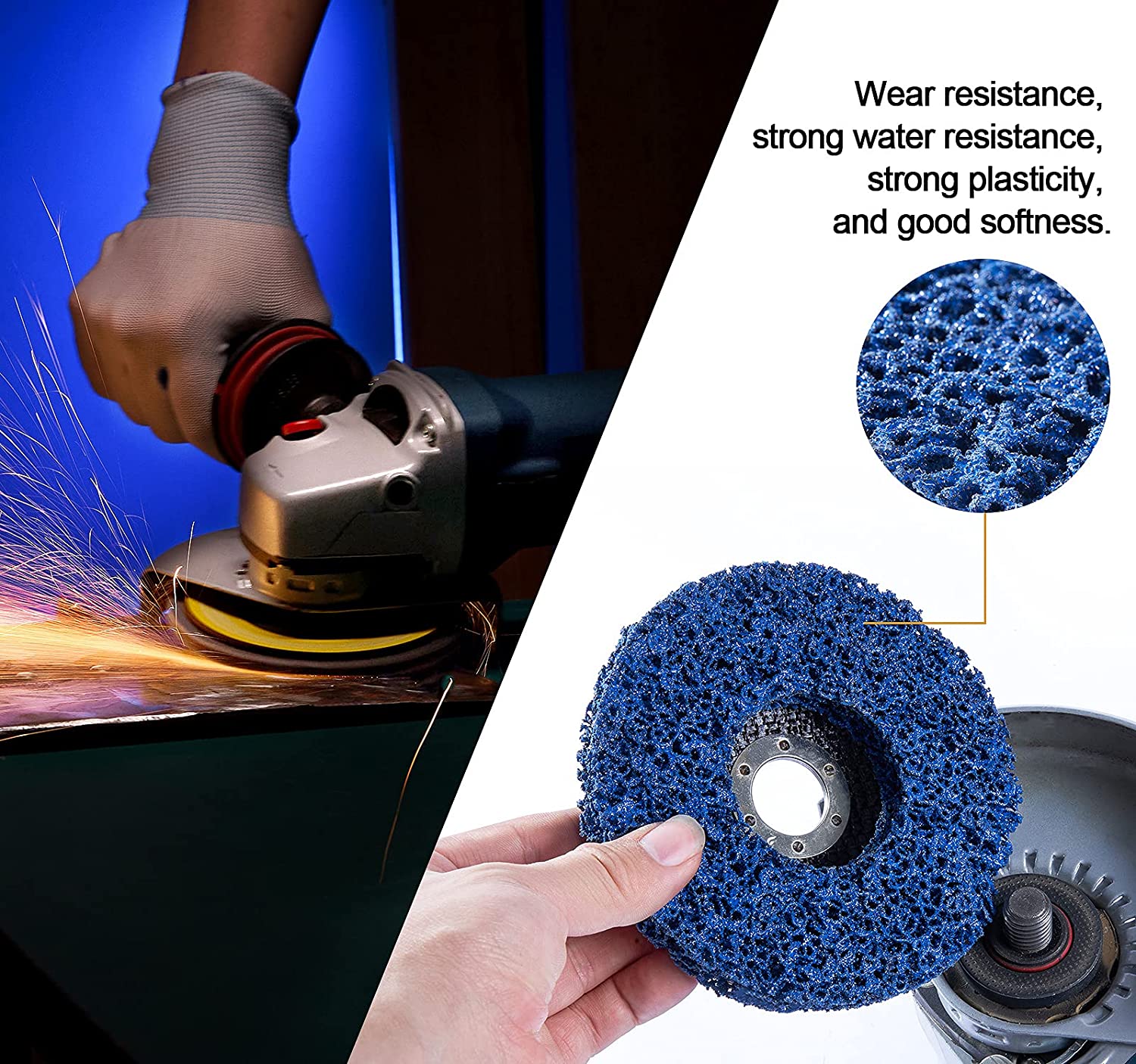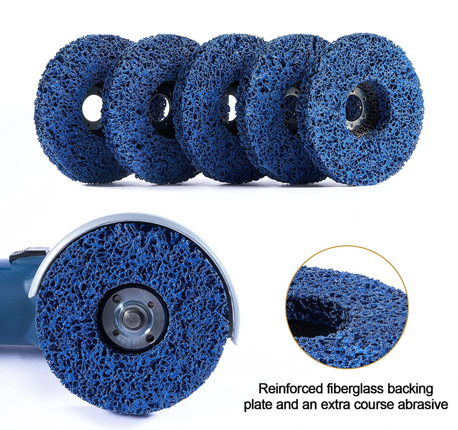 [DURABILITY AND LONGEVITY] Sharp grain is intertwined with phenolic resin elastomer, adhering well to the reinforced nylon fiberglass web backing. The blue stripping disc lasts a really long life and longer than black