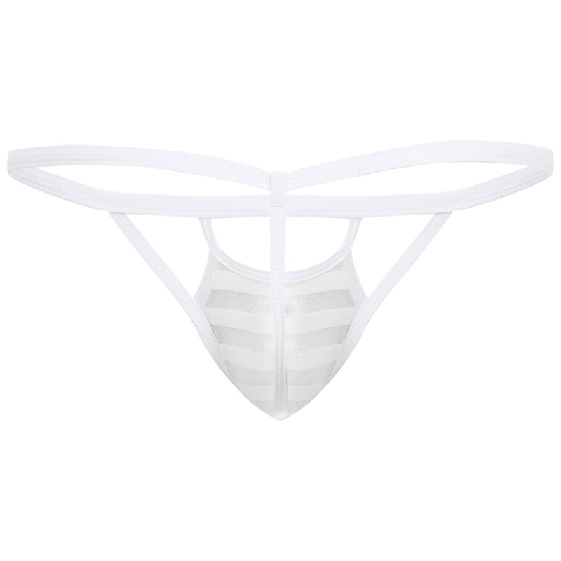 Designs with elastic spaghetti waistband, low rise, bulge pouch with cutout on upper, striped mesh, bringing cool feeling.