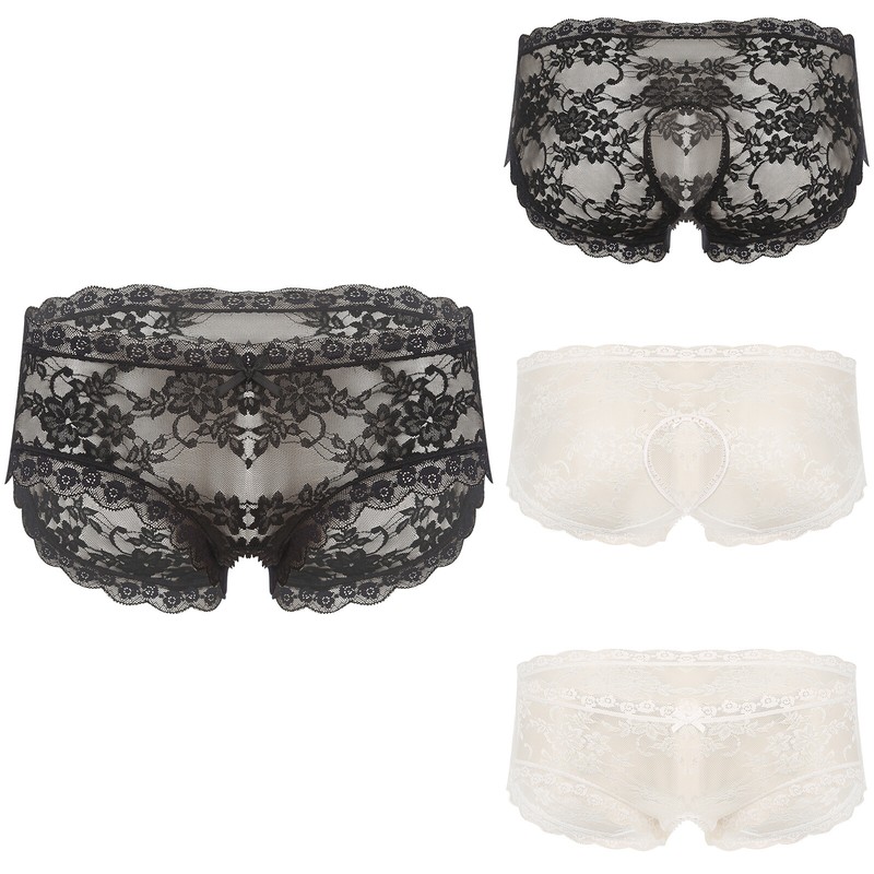 Men's Sexy Lace G-String Hollow Out Backless Briefs Underwear Micro Sissy Thongs