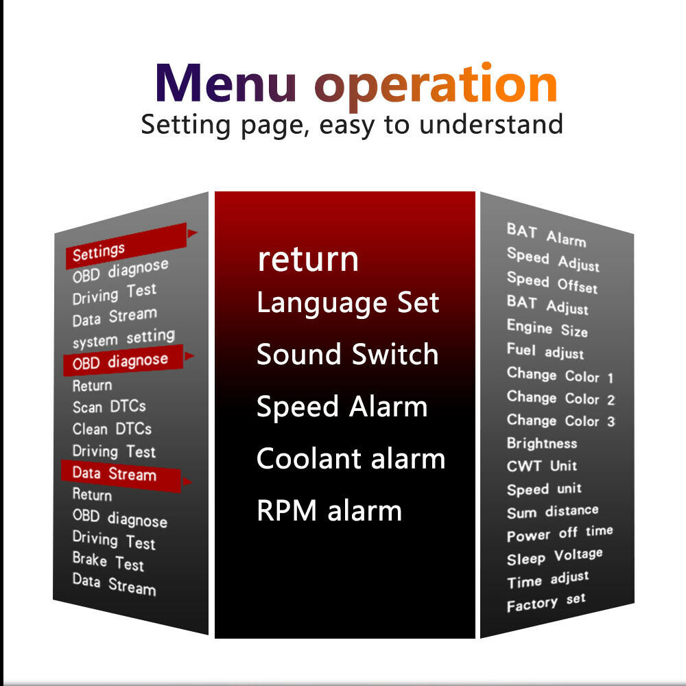 CAR HUD comes from the display technology of the fighter aircraft and displays the car dashboard information (eg speed, RPM, water temperature, voltage, trip distance, etc ) on the own anti-glare plexiglass without affecting the driver's line of sight. Keep the Driver's eyes always on the road to avoid the dangerous of lowering down head to read the dashboard.