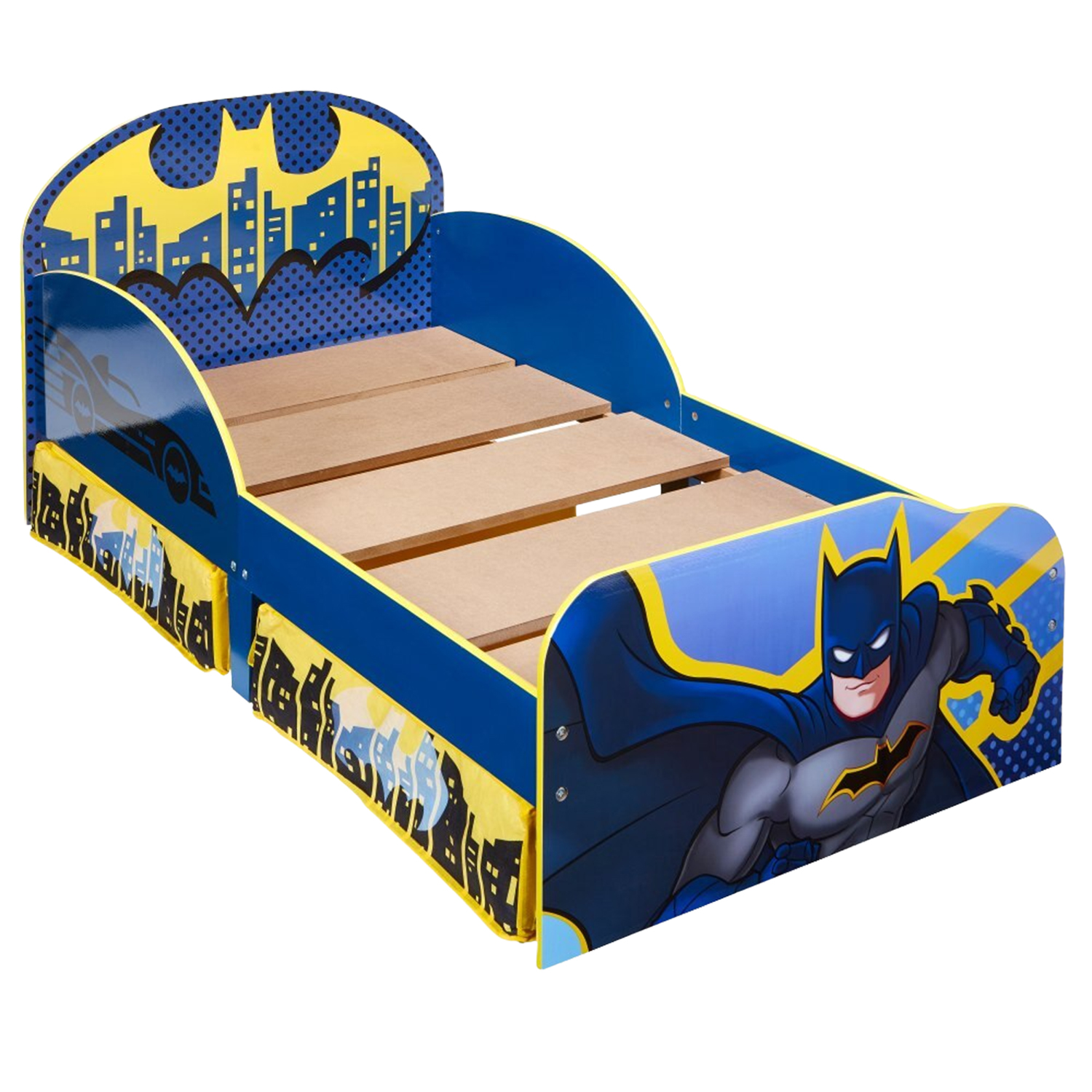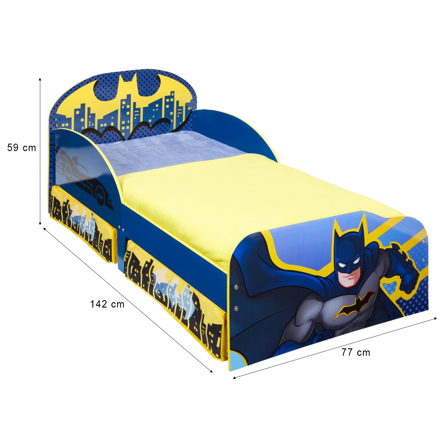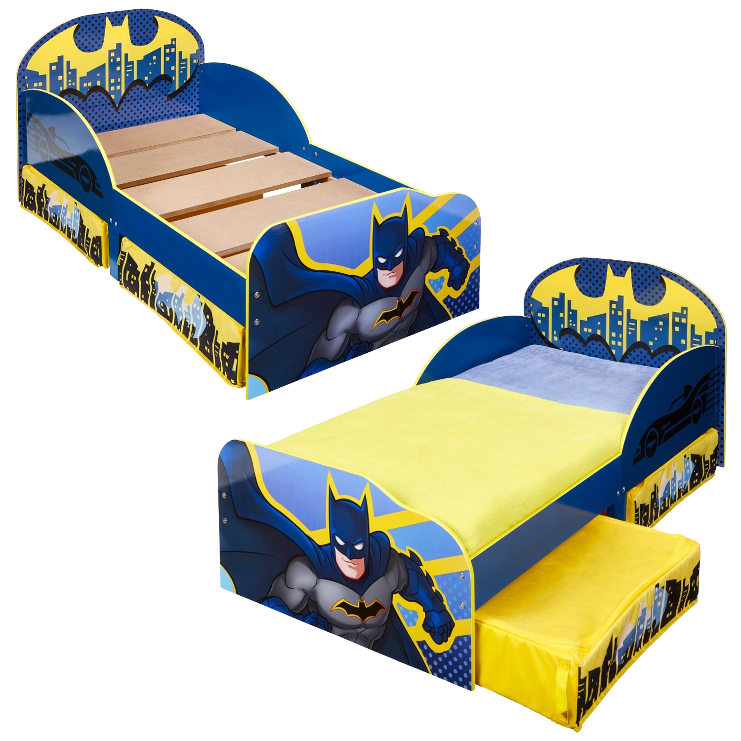 Immerse your little superhero in the thrilling world of Gotham City with the Batman Kids Toddler Bed with added under bed storage.