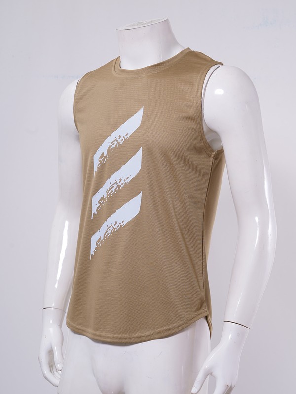 Man Round Neck Sleeveless Racer Back Sport T-shirt Vest Top for Running Gym Fitness Ball Games.