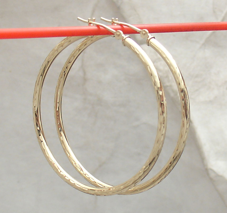 2mm X 40mm Diamond Cut Hoop Earrings REAL 10K Yellow Gold