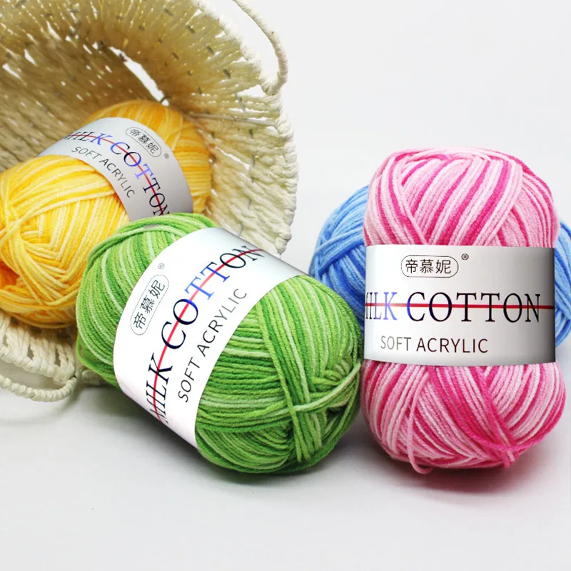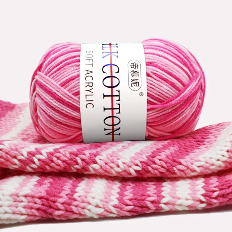 3 Strand Gradient Section Dyed Milk Cotton Woolen Yarn Colorful Pattern Medium Fine Woolen Yarn Crochet Thread Handwoven Woolen Yarn