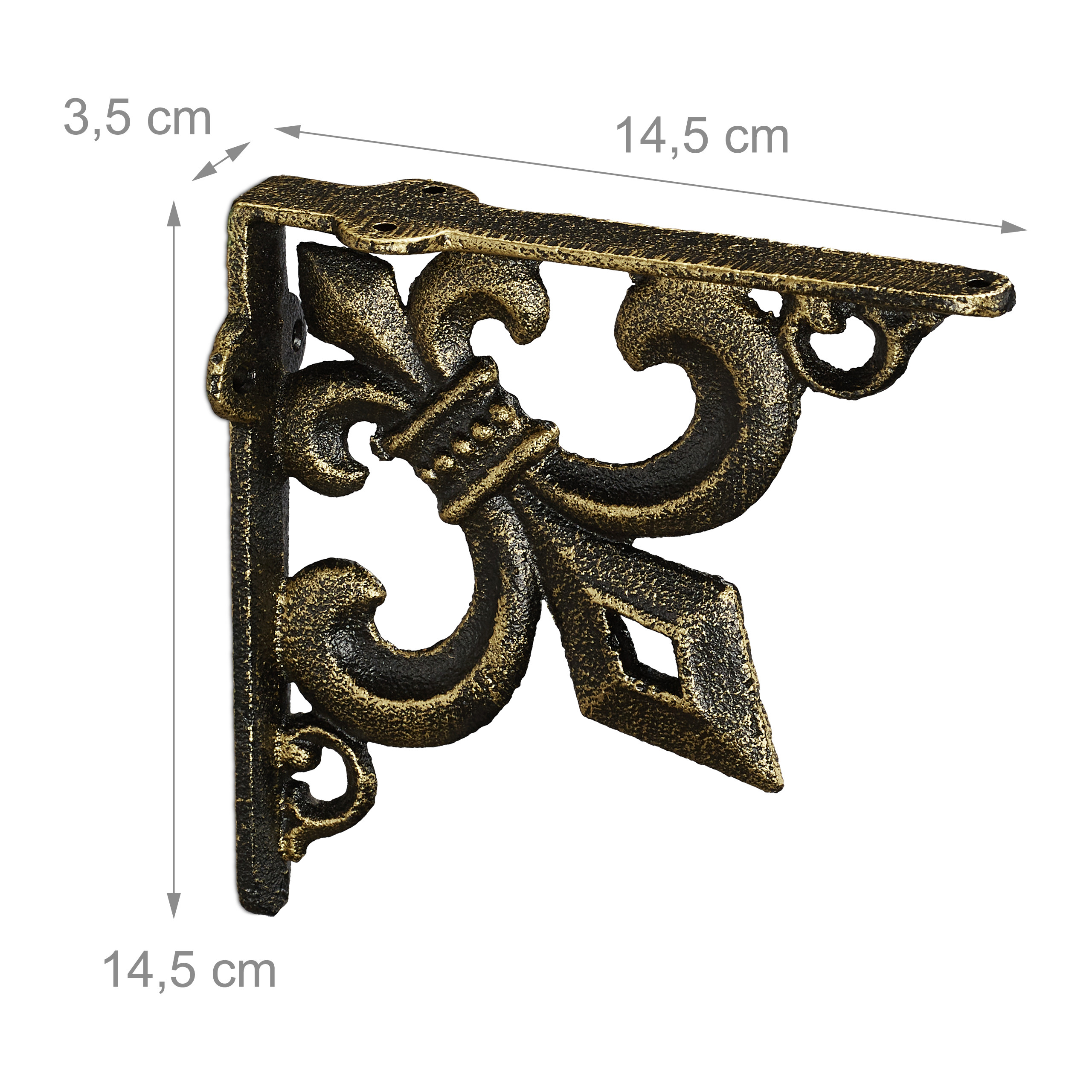 Sie mögen Regale, die nicht nur ihren Job erfüllen, sondern darüber hinaus Ihren Wänden ganz besondere Akzente verleihen? Dann sind die gusseisernen Regalhalterungen im rustikalen Shabby Chic Look genau die richtige Wahl. Regalböden aller Art können Sie mit den Winkelträgern an der Wand montieren, um Bücher, Dekoartikel und mehr in Szene zu setzen. Das dekorative Lilien Ornament ist dabei ein ganz besonderer Blickfang und unterstreicht den nostalgischen Vintage Charme der Winkelhalter.