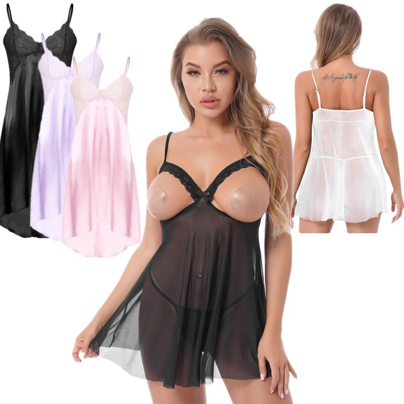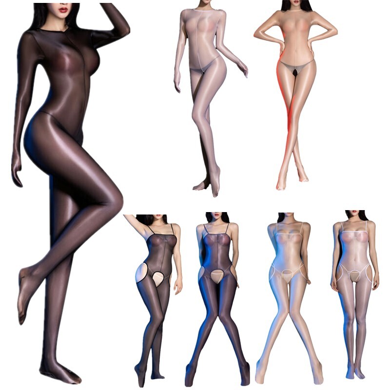 Women Bodycon Dress Oil Glossy Lingerie Fit Tight Nightwear Sexy Sheer Sleepwear