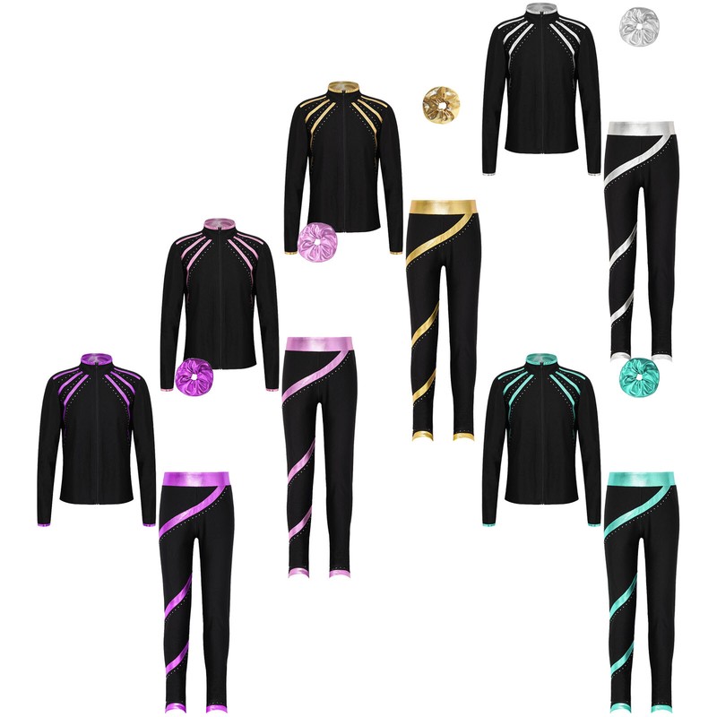 Kids Girls Jacket Long Sleeve Sweatshirt Outfit Activewear Figure Skating Set