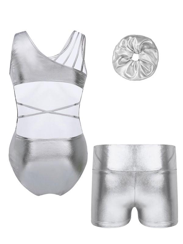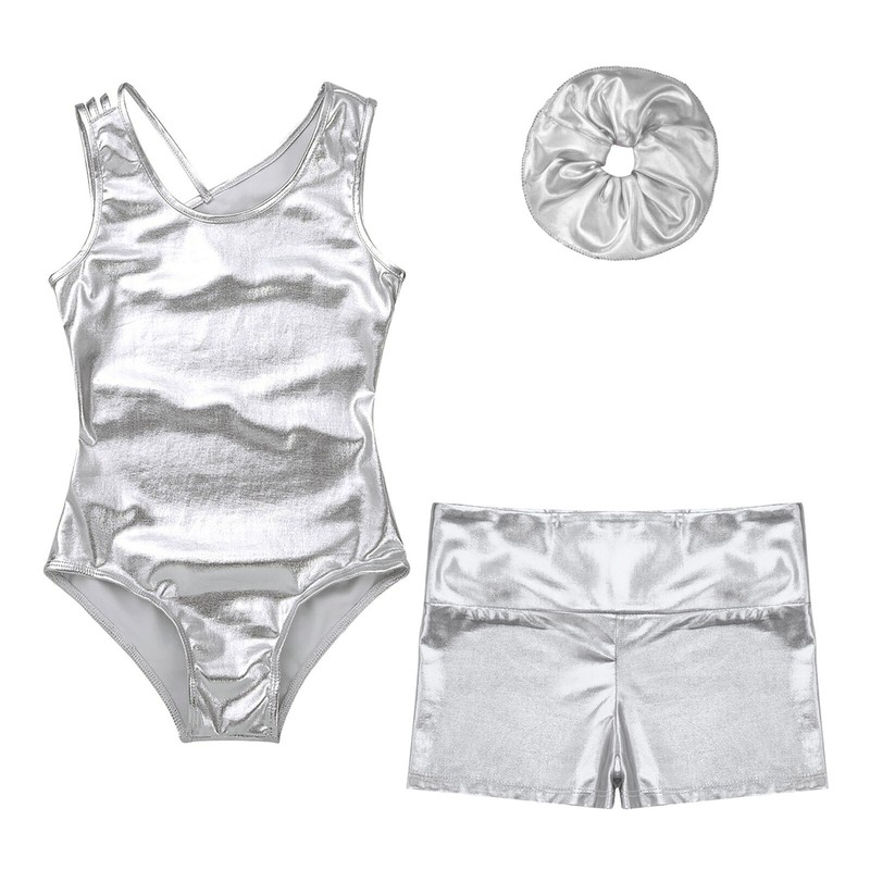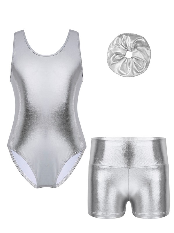 Kids Girls Metallic Leotard with Shorts for Dance.
