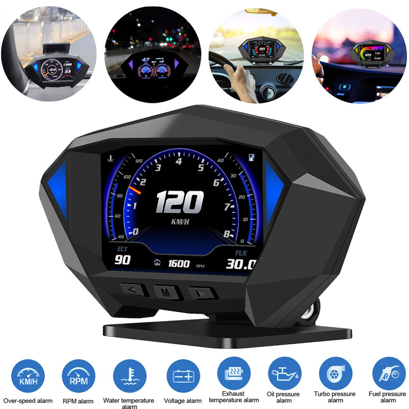 馃搼 OBD2 mode Main Function: Speed, RPM, clock, water temperature, fuel consumption, driving distance, driving time, driving direction, voltage, instantaneous fuel consumption, average fuel consumption, engine load, exhaust temperature, Car outside temperature, turbo pressure, longitude and latitude, number of satellites, altitude, oil temperature, intake temperature, oil pressure, fuel pressure, fuel pressure, Slope angle, Pitch angle, Acceleration test, Brake test