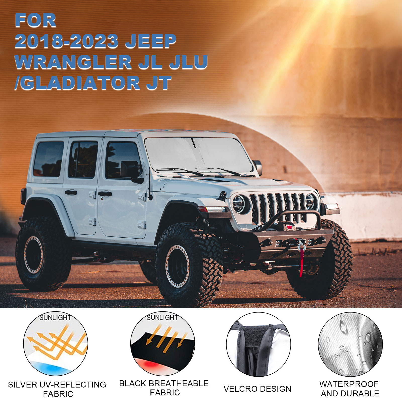 Custom Fit: Perfectly fit for Jeep Wrangler JL JLU 2018-2024.Highly precision model design,fits the edges exactly and just put it in your car windshield window.According to the car size design,100% fit your car and does not need to trim.