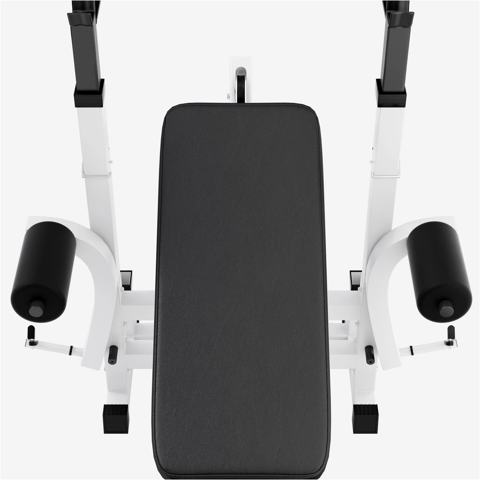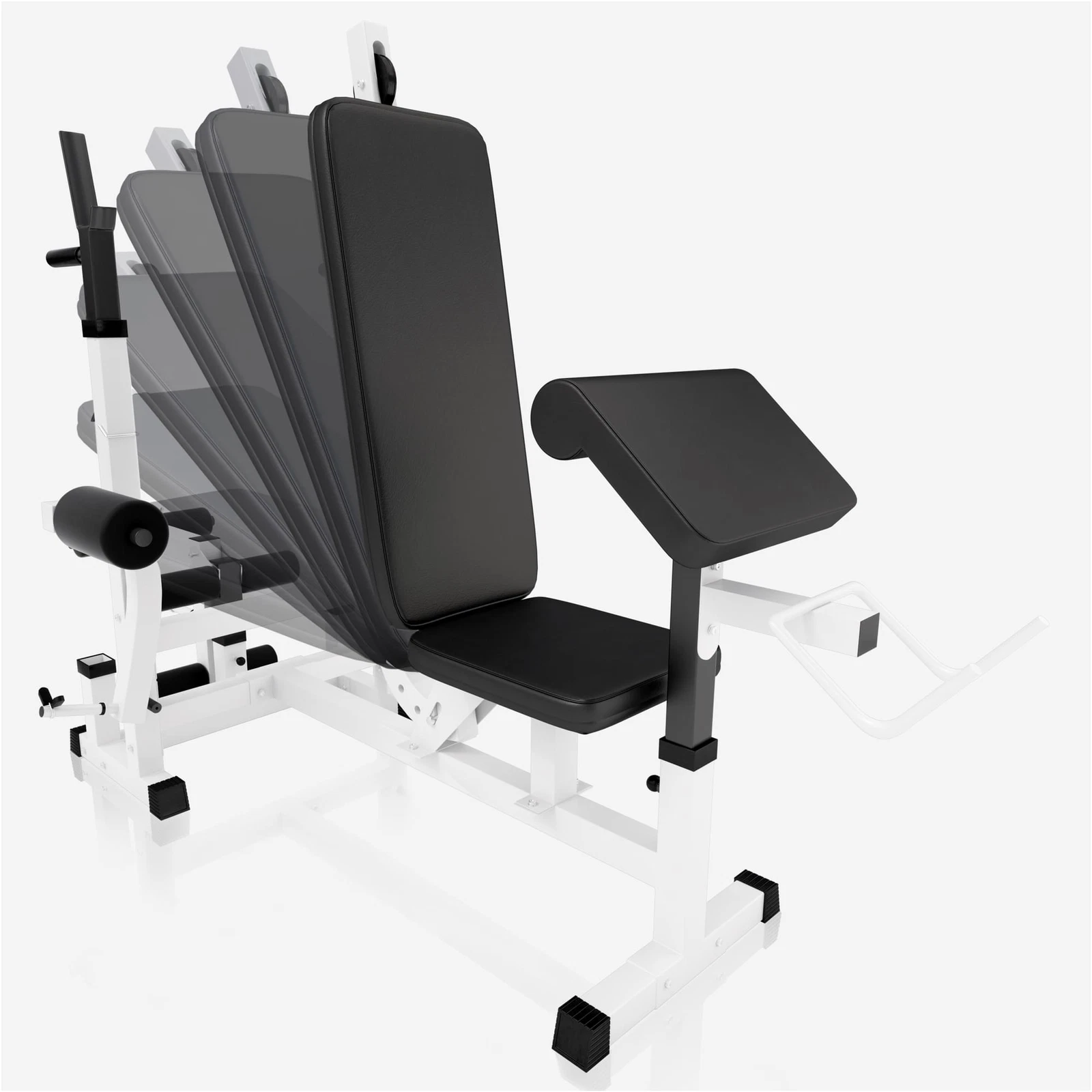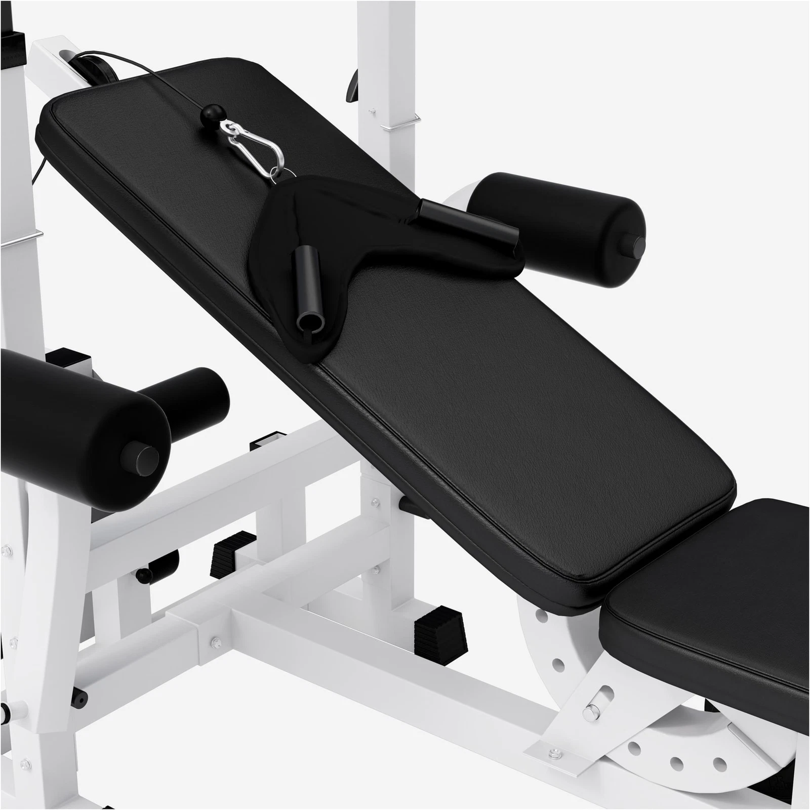 Dank der vielen Elemente und Features der Kraftstation Universal inkl. 100 kg Kunststoff Set, wie der 6-fach verstellbaren Rückenlehne mit Seilzug-Modul, der 5-fach verstellbaren Langhantelablage mit Sicherung und integrierten Dip-Griffen, der 3-fach verstellbaren Curlbank mit Hantelablage, dem 3-fach verstellbaren Beincurler und den Butterflyarmen, wird Dir beim Training nicht langweilig. Durch die Schnellwechselverbindungen lassen sich das Zubehör leicht wechseln und bieten so eine Vielzahl an Möglichkeiten für Dein Workout.