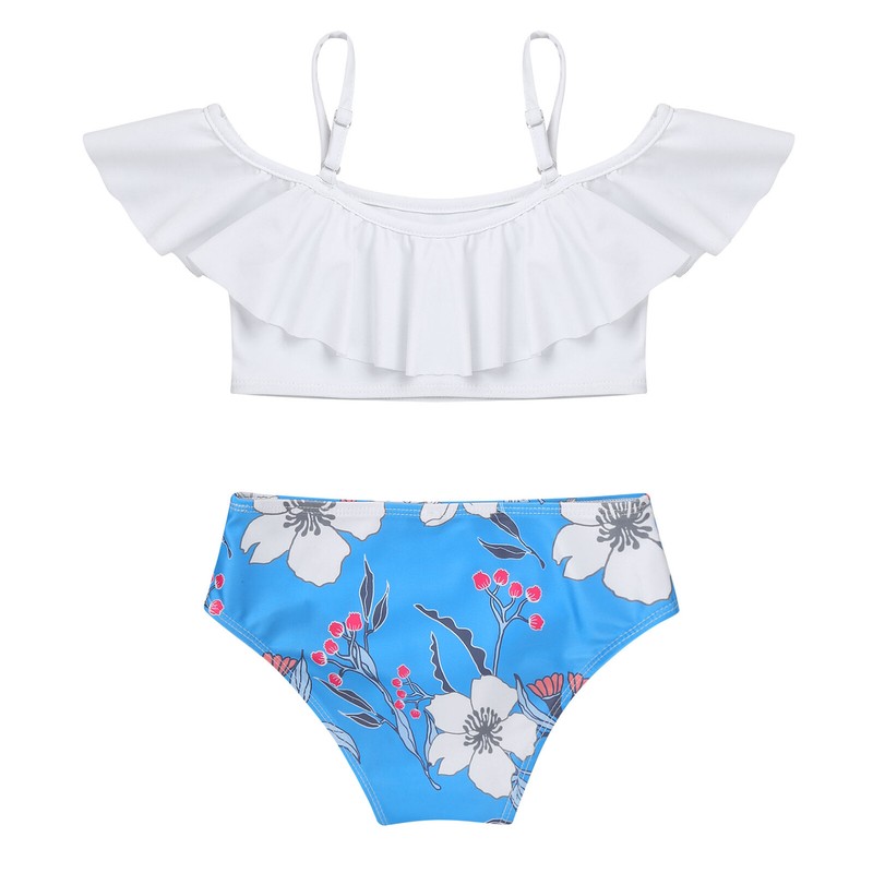 2Pcs Girls Adjustable Spaghetti Straps Off Shoulder Ruffle Hem Top and Floral Print Briefs Set.