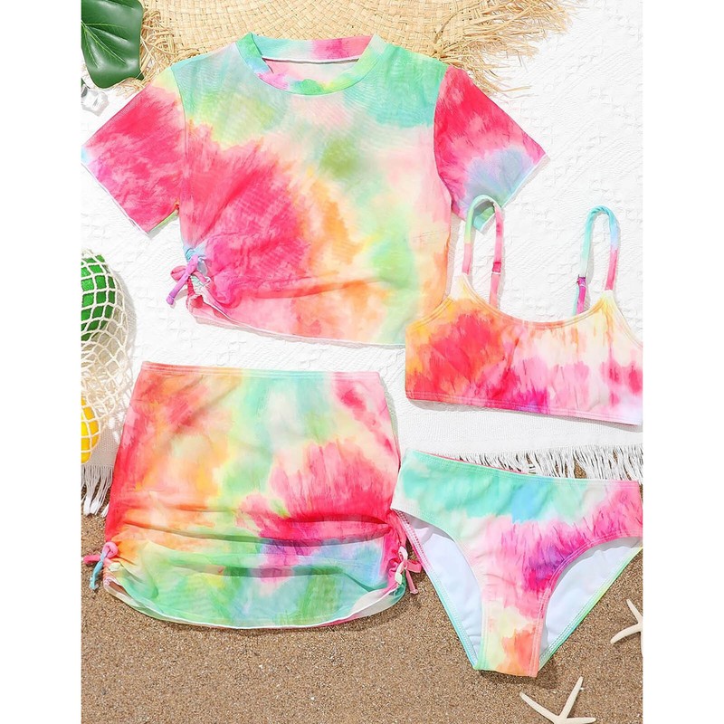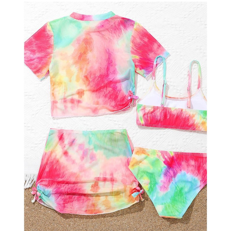 Set Include: 1Pc Girl Swim Top, 1Pc Swim Bottom, 1Pc Cover Up Top. 1Pc Cover Up Skirt