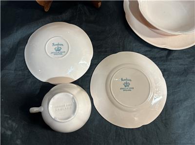 The pieces are marked Rosedawn Johnson Brothers England, cup only has Johnson Bros England. There are no chips or cracks, but the items have crazing.