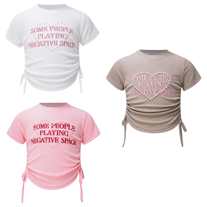 Round neck short sleeve t-shirt with irregular hem, pair with elastic waistband loose pants.