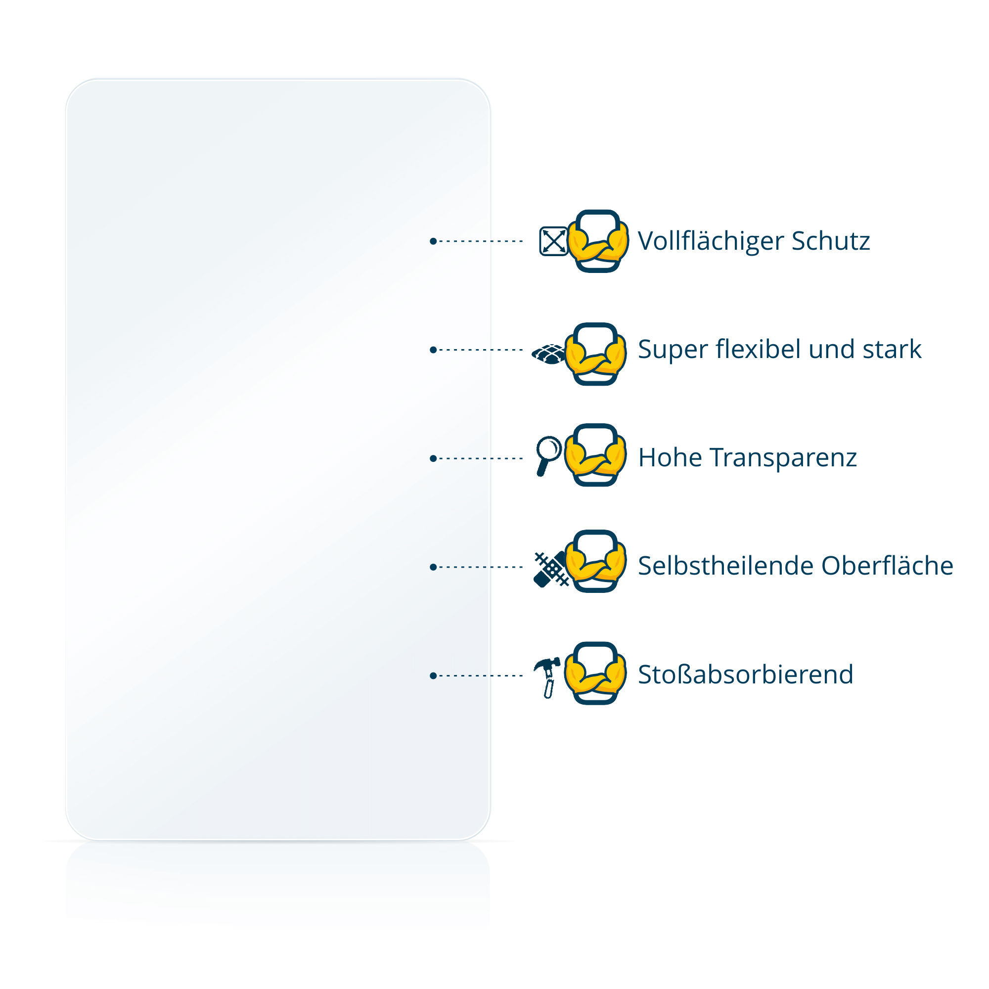 Dank der speziell entwickelten Klebeschicht ist eine einfache Installation gewährleistet. Wichtig ist, dass du dich genau an Montageanleitung und -Video hältst. Falls nach der Installation kleine Luftblasen verbleiben, habe etwas Geduld – diese verschwinden innerhalb von 2 - 3 Tagen von selbst.