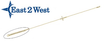 Yellow gold cross attaches sideways to a 14K yellow gold lightweight .8mm diamond-cut cable chain. The chain is adjustable between 16 and 18 inches in length and has a secure 7.5mm lobster claw clasp.