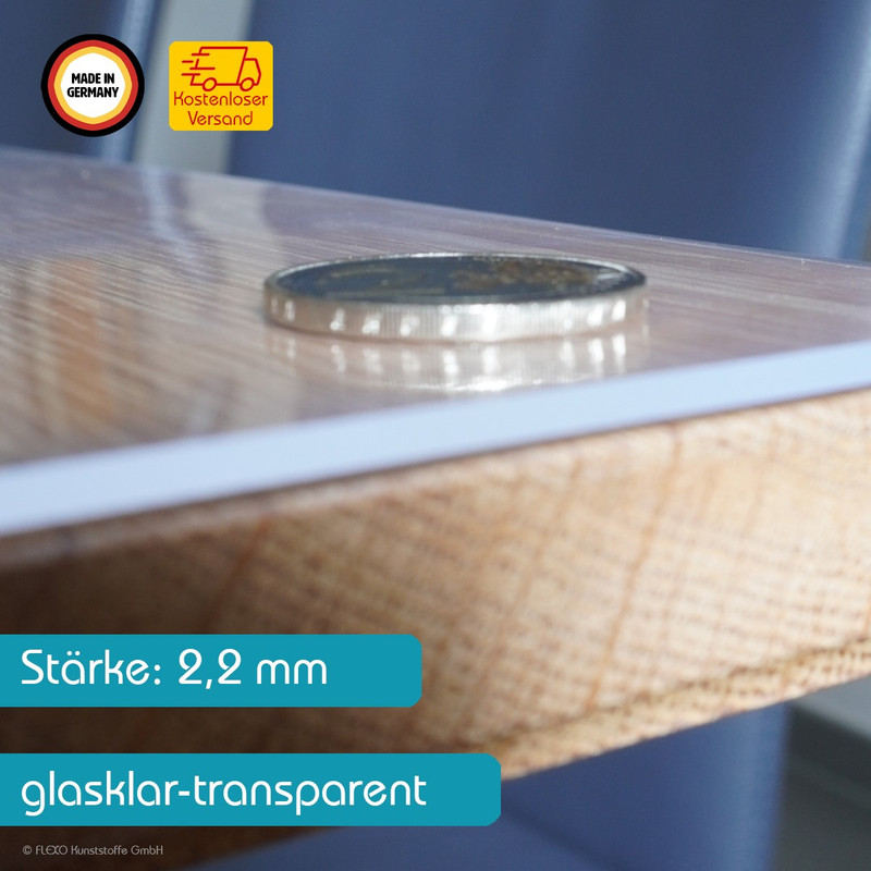 glasklar-transparent · 2,2 mm stark · verhindert Flecken und Kratzer auf der Oberfläche · für den Kontakt mit Lebensmitteln geeignet