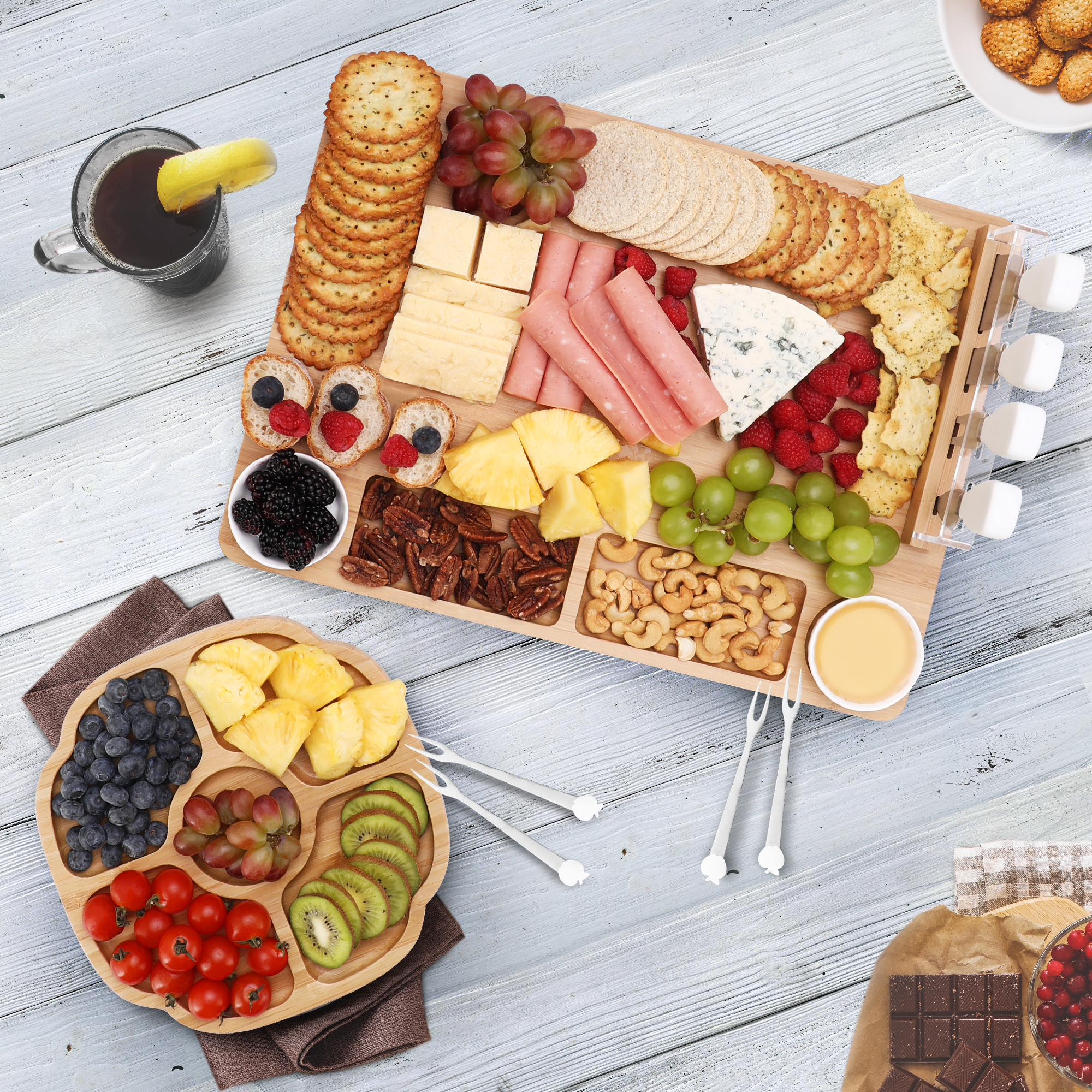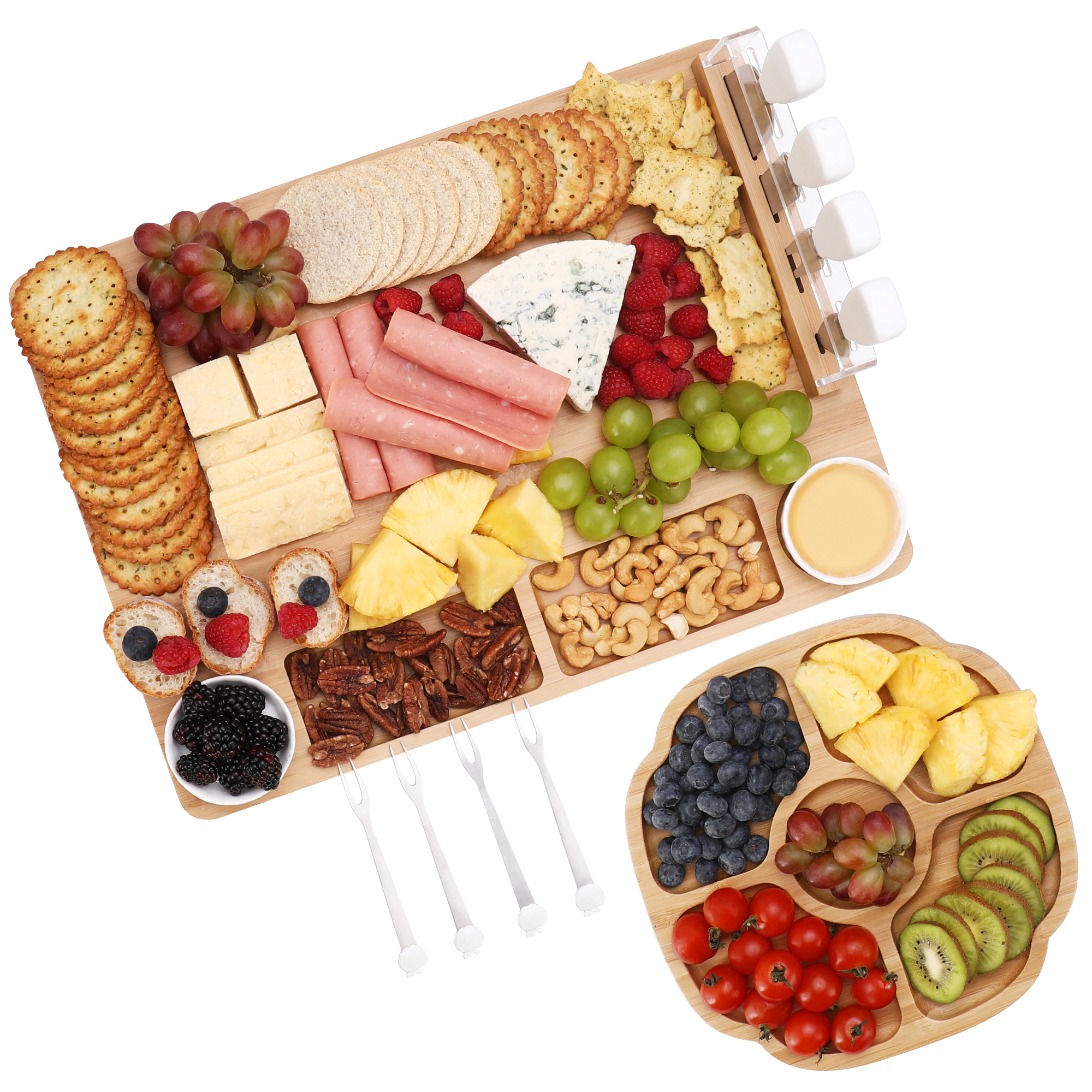 With cheese knife set and forks accessories, this full large Charcuterie Boards Set makes your food party more convenient. It can hold enough food for several people, serving for cheese, meat, fruit, snacks, nuts.