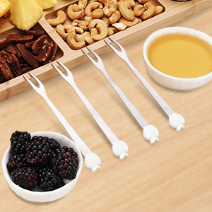 4 Pieces forks and 2 Bowls:This amazing charcuterie cheese board includes 4 cheese forks. Such a helpful tool for elegantly eating snacks, fruits, small cheese, etc. 2 pieces of ceramic bowls can be placed either on board or on table to save space. It can be for setting out little spices or ingredients. |