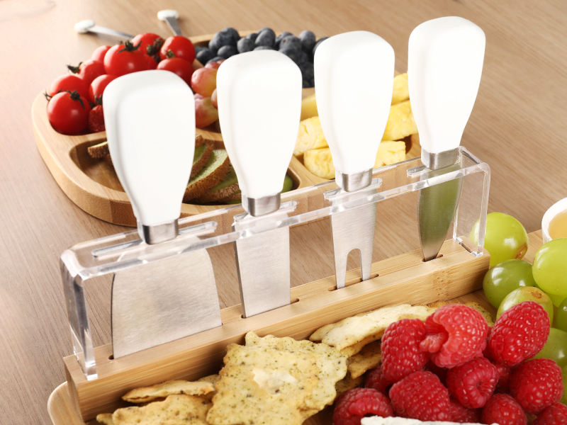 4 Pieces Cheese Knives:This cheese board set comes with 4 pieces stainless steel cheese knives in different types, so you can use them for any kind of cheese. 1 serving knife, 1 chisel knife, 1 heart knife, 1 flat knife. Make your food party more enjoyable. |