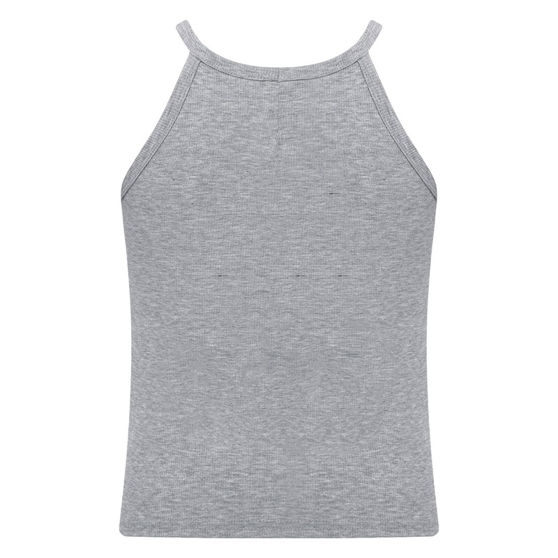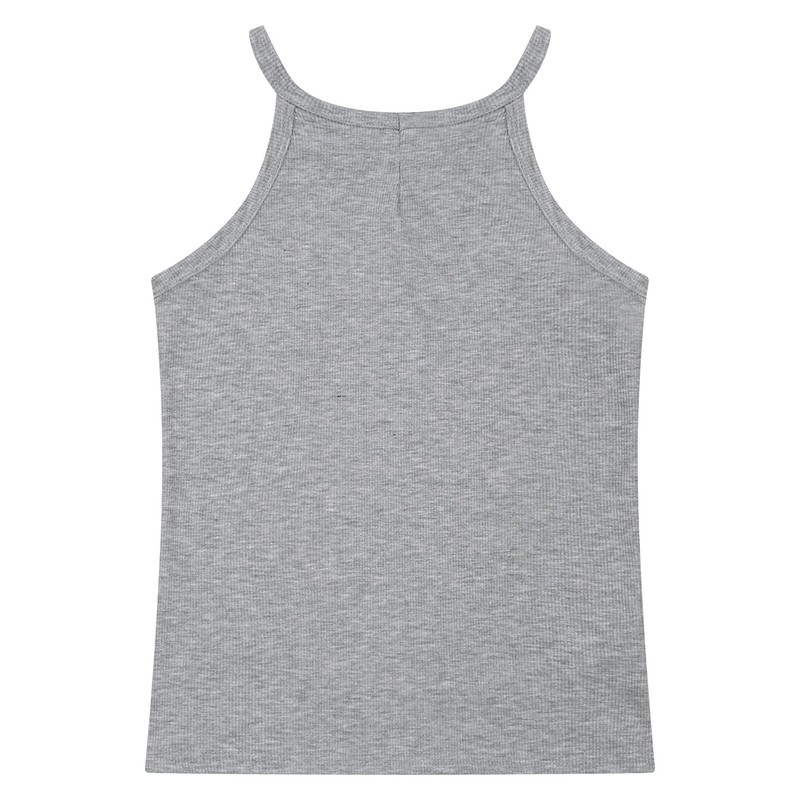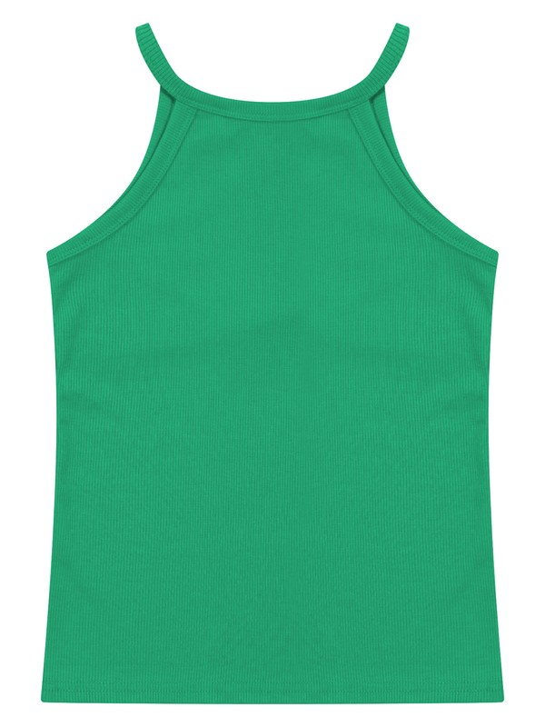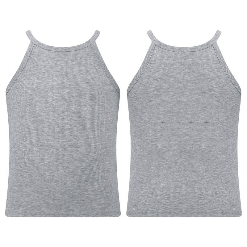 Casual and cute camisole for girls with spaghetti straps, ribbed design, solid color, pull on closure.