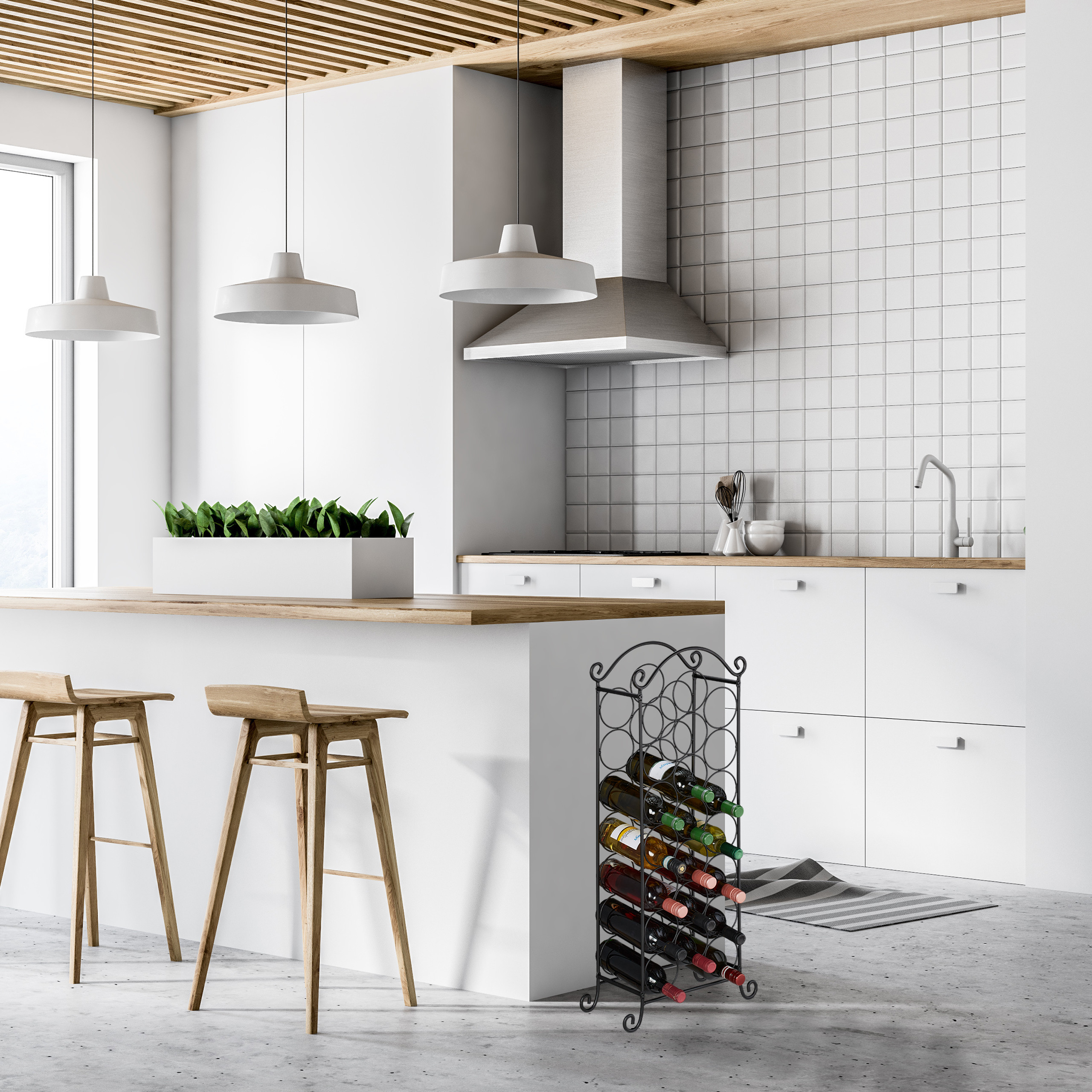 - Stabil: Das schwarze Flaschenregal aus pulverbeschichtetem Eisen steht trotz schlanken Designs stabil
