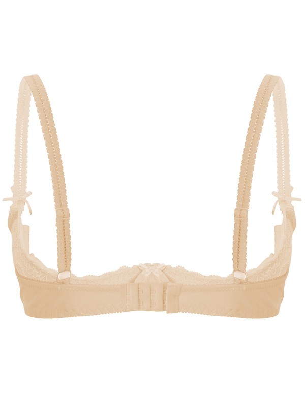 Balconette bra is designed with strapless, cupless and unpadded, supportive underwire, bow decorated, back 3-row hook&eye closure.