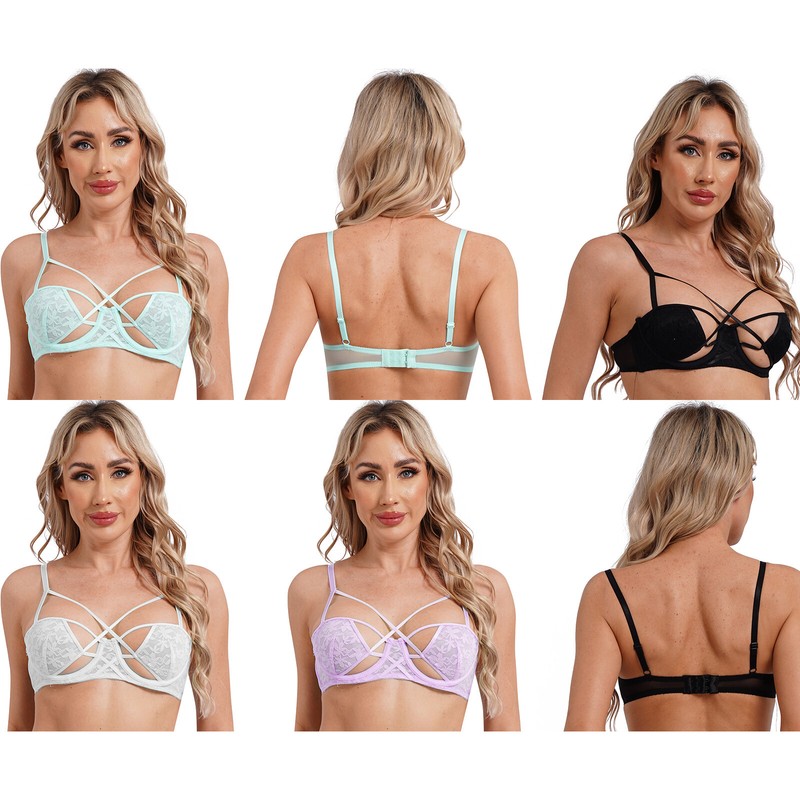 Women Lace Bra 1/2 Cup Push Up Underwire Lace Bra Lingerie Adjustable Strap Sponge Padded Brassiere Underwear.