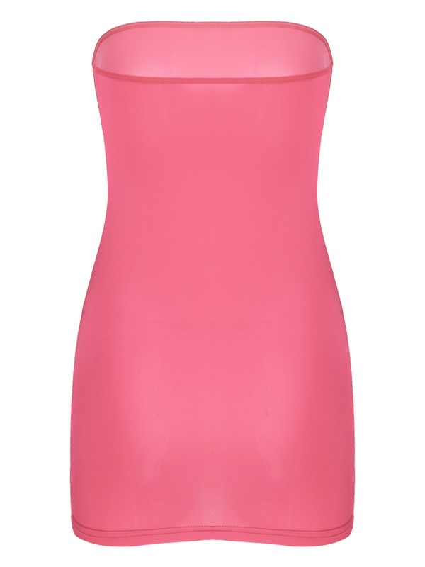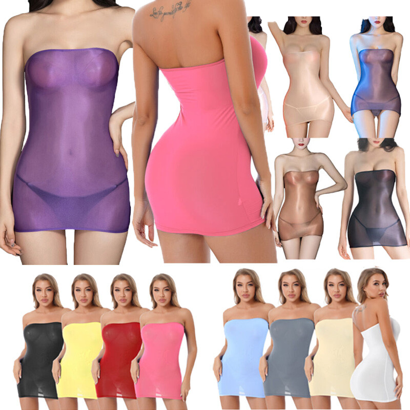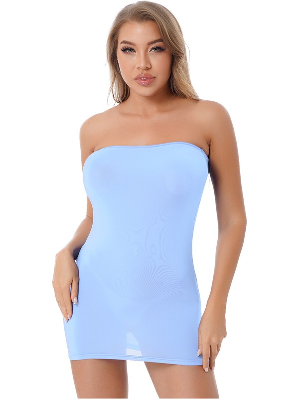 Womens Strapless See Through Tube Dress Mesh Tight Pencil Dress Sheer Nightdress