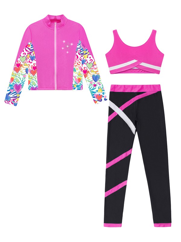 Colorblock patchwork, close-fitting pants ensure girls free skate on the ice.