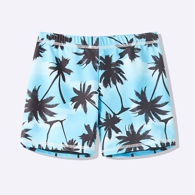 Designed with mock neck, short sleeve swim top and swim shorts, coconut tree print fit summer beach.