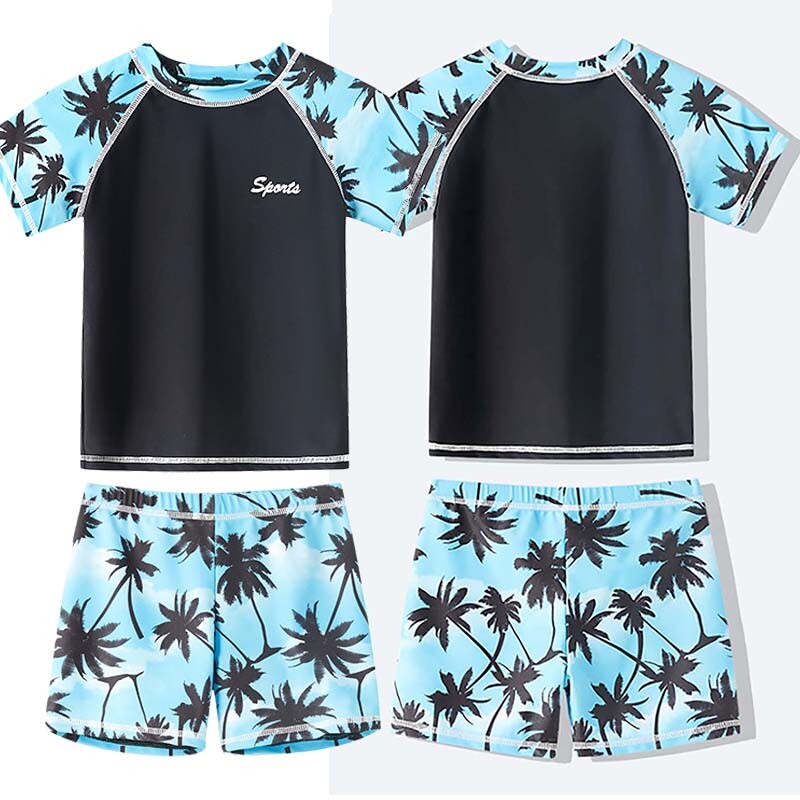Two pieces tops and trunks swimming suit for boys, UPF 50+ protects kids from sunburn and uv rays.